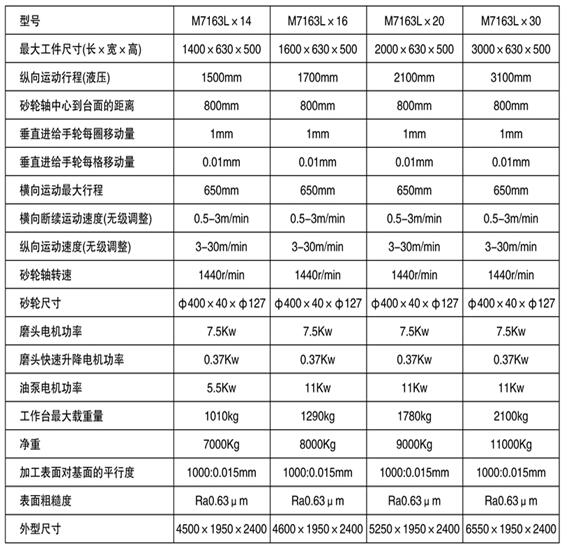 M7163-1250主要技術(shù)規(guī)格參數(shù) | ||